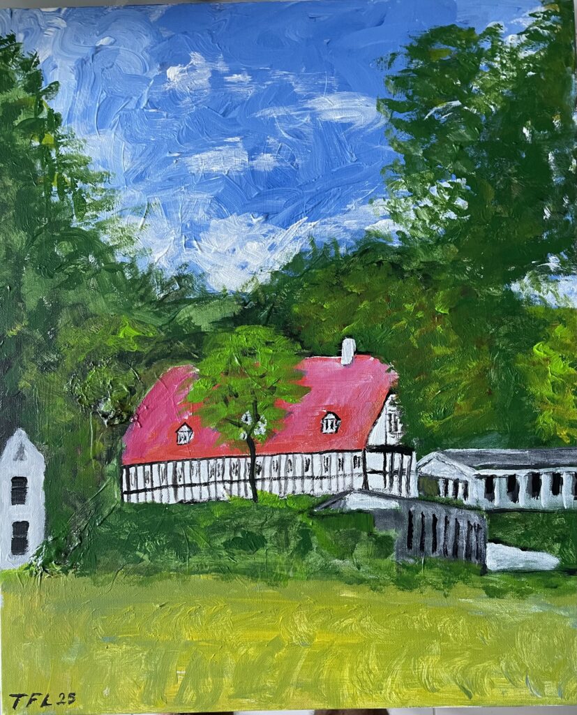 50×60 – Akryl på lærred – Bindingsværkhus i Skodsborg – 3.600