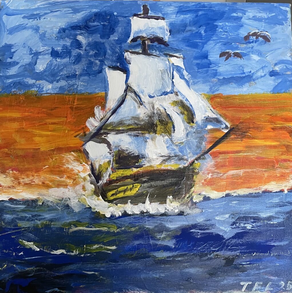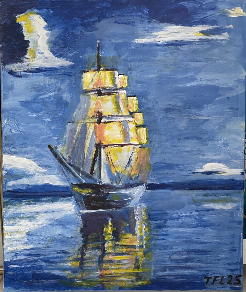 50×60 – Akryl på lærred – En skonnert – 3.600